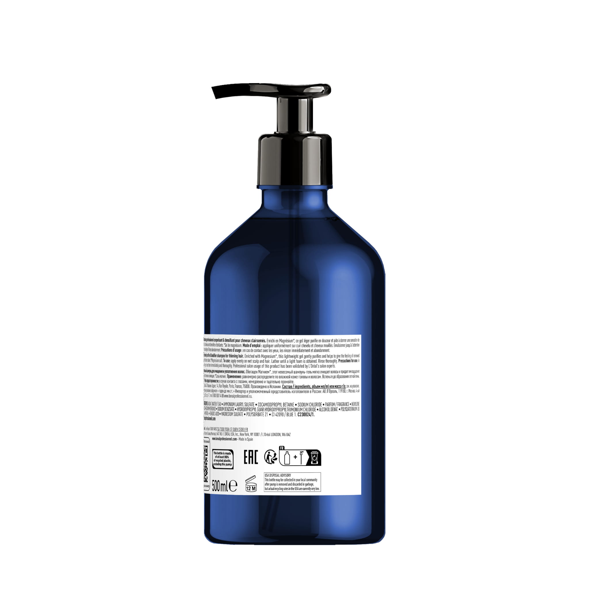 Szampon L’Oréal Professionnel Serioxyl Advanced 500 ml to delikatny, lecz skuteczny produkt do włosów przerzedzonych oraz cienkich, mający na celu oczyszczanie skóry głowy i nadanie włosom większej gęstości. Formuła zawiera sole magnezu, które pomagają usuwać zanieczyszczenia i nagromadzone produkty stylizacyjne (build-up), co przyczynia się do lepszego mikroklimatu skóry głowy i sprzyja wzrostowi zdrowszych włosów. Efekty po użyciu: natychmiastowa objętość +22 % już po pierwszym myciu i długotrwały efekt gęstszych włosów, gdy szampon stosowany jest regularnie; włosy mogą być bardziej miękkie, lśniące i odbite od nasady.